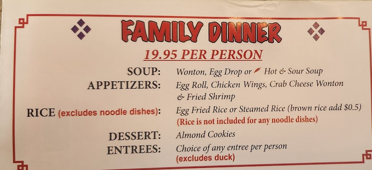 The menu at He-Xing Garden offers a welcoming mix of classic Chinese and Thai dishes, perfect for a relaxed lunch or a casual dinner. You’ll find comforting, familiar options like Sesame Chicken and Hot and Sour Soup alongside flavorful Thai specialties such as Drunken Noodles and Pad Thai, making it a versatile spot for a satisfying meal any day of the week.
